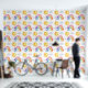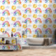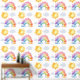 decoración de la habitación de los niños con un patrón de repetición de nubes, sol y arco iris