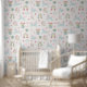 Add a touch of softness and tranquility to your child's space! This design features a serene white background adorned with light blue and pink unicorn illustrations, along with gentle rainbows, spring flowers, and bright crescent moons.