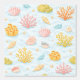 Seamless watercolor illustration of underwater sea life featuring coral branches seashells starfish sponges and bubbles in soft pastel colors arranged in a repeating ocean pattern on a light blue background