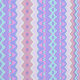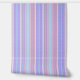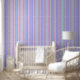 Las rayas verticales, de zigzag en azul pastel, lavanda, rosa y marrón crean un estilo moderno y elegante para este papel tapizado.