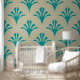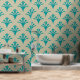 Papel Pintado Patrón Art Deco 02 - Verde azulado en blanco