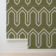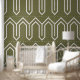 Papel Pintado Patrón Art Deco 05 - Blanco sobre verde de camufla