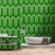 Papel Pintado Patrón Art Deco 05 - Blanco sobre verde forestal