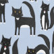 Pequeños y divertidos gatos de Tuxedo en blanco y negro sobre un fondo azul cielo pastel, perfecto para los amantes de los animales. Arte original de Nic Squirrell.