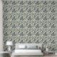 Papel tapiz del patrón botánico de oro y marina - Admire la serena belleza de la naturaleza con este patrón impecable con exquisitos bocetos botánicos y una paleta de colores inspirada en el jardín. Este diseño de papel pintado aporta el encanto de un jardín floreciente a tu espacio.