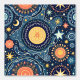 Transforme tu espacio con este encantador patrón celestial con intrincados soles, lunas y estrellas en un fondo marino profundo. Perfecto para una decoración bohemia y mística en casa, este mágico diseño combina elementos celestes extravagantes con influencias folclóricas. El coral cálido, el amarillo dorado y los acentos de menta crean un ambiente cósmico de ensueño ideal para ropa de cama, tapices o espacios espirituales. Cada elemento se detalla cuidadosamente con espirales, puntos y líneas de flujo que capturan el misterio del cielo nocturno.