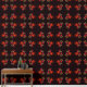 Papel Pintado Patrón de arte abstracto rojo verde floral moderno
