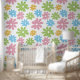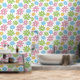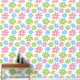 Papel Pintado Patrón de arte floral verde animado amarillo rosa