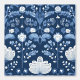 Papel Pintado Patrón de arte folclórico azul y blanco