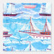 Patrón de barcos de navegación acuática sobre fondo ondulado azul.Patrón de crucero de viaje con velero blanco en fila | © y ® Bigstock® - Todos los derechos reservados.