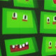 Un patrón divertido y peculiar que presenta varias caras verdes pixeladas con diferentes expresiones.