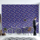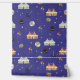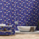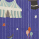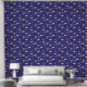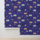 Papel mural de un lindo circo con carpas de circo, bicicletas, juguetes y gorras divertidos sobre fondo azul. Papel de pared perfecto para guarderías o cualquier otra habitación para niños.