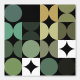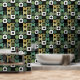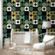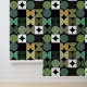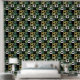 Papel Pintado Patrón de Círculos Verde Beige Negro Mostaza Marró