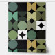 Este diseño presenta un diseño geométrico moderno, con círculos y medias tintas de blanco, ocre, marrón mostaza, verde verde azulado y beige sobre un fondo negro. Es un diseño elegante y elegante que incorpora un minimalismo ecléctico, perfecto para los diseñadores de interiores artísticos, los entusiastas de la decoración, los creadores de tendencias y los aficionados a los motivos geométricos digitales retro o abstracto vintage. Este patrón de hipster ornamentado pero divertido es versátil, disponible en una variedad de objetos de decoración casera contemporánea, lo que lo hace apto para realzar el ambiente de espacios como habitaciones de maestros, cocinas, salones, cuevas masculinas, dormitorios universitarios, condominios, estudios o apartamentos.