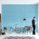 Papel Pintado Patrón de copo de nieve azul para Navidades festiv