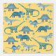 Dulces dinosaurios azules y verdes sobre un fondo amarillo soleado. Rex de Tyrannosaurus, Triceratops, Diplodocuments, Stegasaur y Spinosaur. Perfecto para guardería, dormitorio o sala de juegos para niños. Arte original de Nic Squirrell.