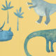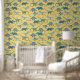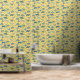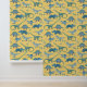 Papel Pintado Patrón de dinosaurio divertido amarillo azul