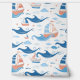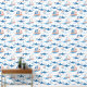 Papel Pintado Patrón de embarcaciones en olas, nubes y ballenas