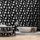 Establezca la escena para Halloween con este papel pintado que presenta un patrón repetido de simples siluetas blancas fantasma de diferentes tamaños contra un fondo negro. El blanco y negro minimalista crea un estilo moderno y festivo, perfecto para un ambiente de temporada espeluznante.