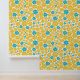 Papel Pintado Patrón de flores - Turquesa y amarillo