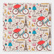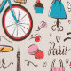 Este diseño presenta un patrón con la Torre Eiffel, un chica en bicicleta con boina, café y dulces dulces golosinas de París.