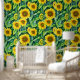 Magnífico garrote de girasoles acuarelas y papel pintado de cáscara. Papel amarillo, verde y marrón para los amantes de los girasoles.