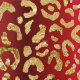 Este papel pintado con papel pintado de cristal muestra un patrón de leopardo dorado en un fondo rojo oscuro. Da un gran acento a tu decoración.