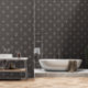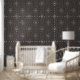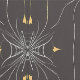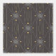 Un sofisticado patrón abstracto de inspiración floral con intrincadas líneas de arte en blanco y amarillo sobre un fondo gris oscuro. El diseño simétrico se caracteriza por formas que recuerdan a las flores y que le dan un toque de elegancia y refinamiento. Ideal para los textiles, el papel pintado o la decoración moderna.