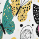 Patrón de mariposas caprichosas con puntos, en verde azulado morado y oro
