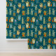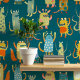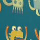 Papel Pintado Patrón de Monstruos divertidos Verde Verde azulado