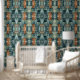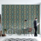 Papel Pintado Patrón de mosaico de cobre, Tan, Denim y Sage Mosa