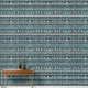 Diseño geométrico detallado en blanco y negro con hileras de árboles, casas y formas abstractas. Este intrincado patrón crea una estética moderna pero natural, ideal para la decoración de la casa o los textiles.