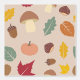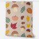 Papel de fondo con un patrón otoñal que incluye arce, haya, hojas de roble y avellana, setas, bellota, calabaza, castañas y nueces en colores otoñales. Un diseño acogedor que recuerda a la naturaleza y al bosque para la decoración de la cocina.
