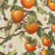 Ilustracion Persimmons. Frutas, flores y hojas en ramas. Patrón sin foco. Color de fondo personalizado.