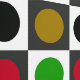 Geométrico Gométrico Retro Clásico PUNTOS rojo, verde, amarillo, negro y blanco negro y blanco sobre cuadrados grises y negros Patrón de diseño Papel de escritorio