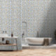 Con rayas verticales de flores y girasoles en amarillo cálido y azul turbio, este diseño de azulejos tiene un encanto rústico de casa de campo. Sus repetitivos motivos botánicos aportan un ambiente animado y artesanal, perfecto para las cocinas, las habitaciones del jardín o los acogedores toques murales.