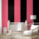 Papel Pintado Patrón de rayas grandes verticales rosadas en negr