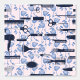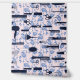 Este diseño cuenta con diversas herramientas de cuidado de la belleza en un fondo de rosas azules.