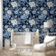Papel Pintado Patrón de rosas blancas azules