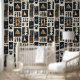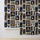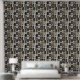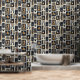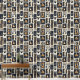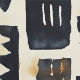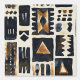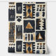 Diseño de tela de barro africana pintada a mano con formas geométricas audaces en tonos tierra de negro, marrón y crema.