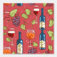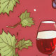 Si te gustan los diseños inusuales, este será perfecto para ti. Se sirven botellas de vino y uvas.