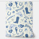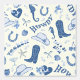 Patrón juguetón en tonos azul y blanco con elementos costeros / de vaquera (bota de vaquera, sombrero, herradura, caballo, estrellas, lazos, cerezas, caballito de mar, estrella de mar, concha, tipografía howdy, yeehaw) como decoración para fiesta de soltera / fiesta de despedida de soltera / cumpleaños / fiesta de graduación, etc. en la playa