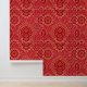 Papel Pintado Patrón dorado rojo ORIENTAL -