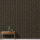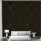 Elegante tapiz de pared para espacios modernos con un adorno adornado con un estilo Art Deco dorado sobre un fondo negro.