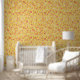 Un divertido patrón retro floral de sol amarillo y rosa con flores silvestres pintadas de forma suave. Arte original de Nic Squirrell.