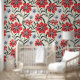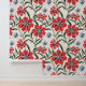 El moderno tapiz de motivos florales rojos blancos presenta flores rojas y blancas brillantes y audaces con hojas verdes sobre un fondo crema. Perfecto para habitaciones, casa, oficina y decoración fiesta. Creado por Evco Studio www.zazzle.com/store/evcostudio
