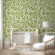 Este diseño de papel pintado de bonito incluye un patrón floral en verde sobre blanco. Inspirado por un motivo de flor vintage, este diseño anticuado es un patrón repetido. CONSEJO DE DISEÑO: Puede cambiar el color "fondo" blanco a cualquier sombra.