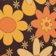 Este es un patrón floral vintage retro de 70 en naranja y amarillo sobre fondo oscuro. Es un papel tapiz de gran belleza para las mujeres que aman los diseños florales retro de los años 70
