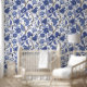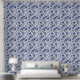 Papel Pintado Patrón floral del Jardín Mughal Azul y Blanco