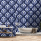 Papel Pintado Patrón floral del Jardín Mughal Azul y Blanco